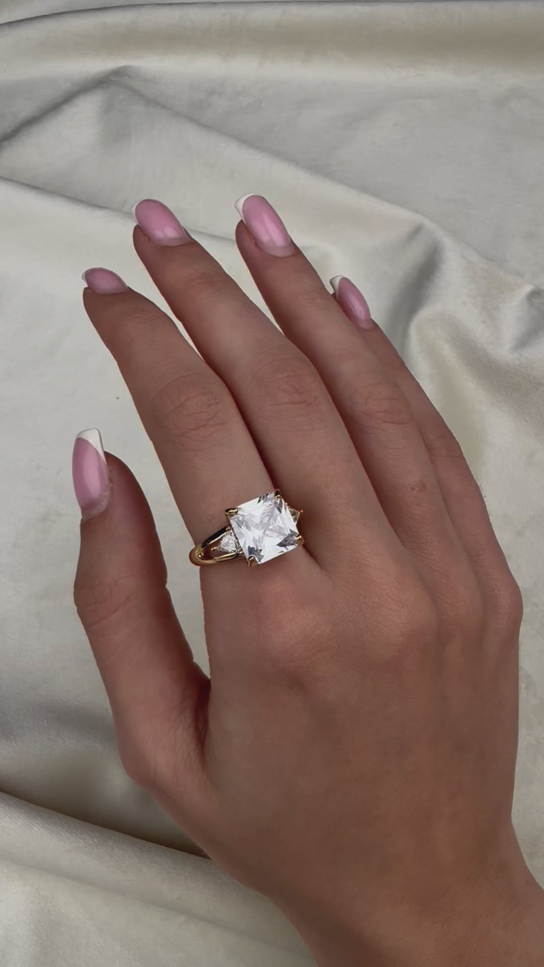 Unazë me gur katror, dizajn modern dhe i pastër – perfekte për një pamje elegante dhe të rafinuar.