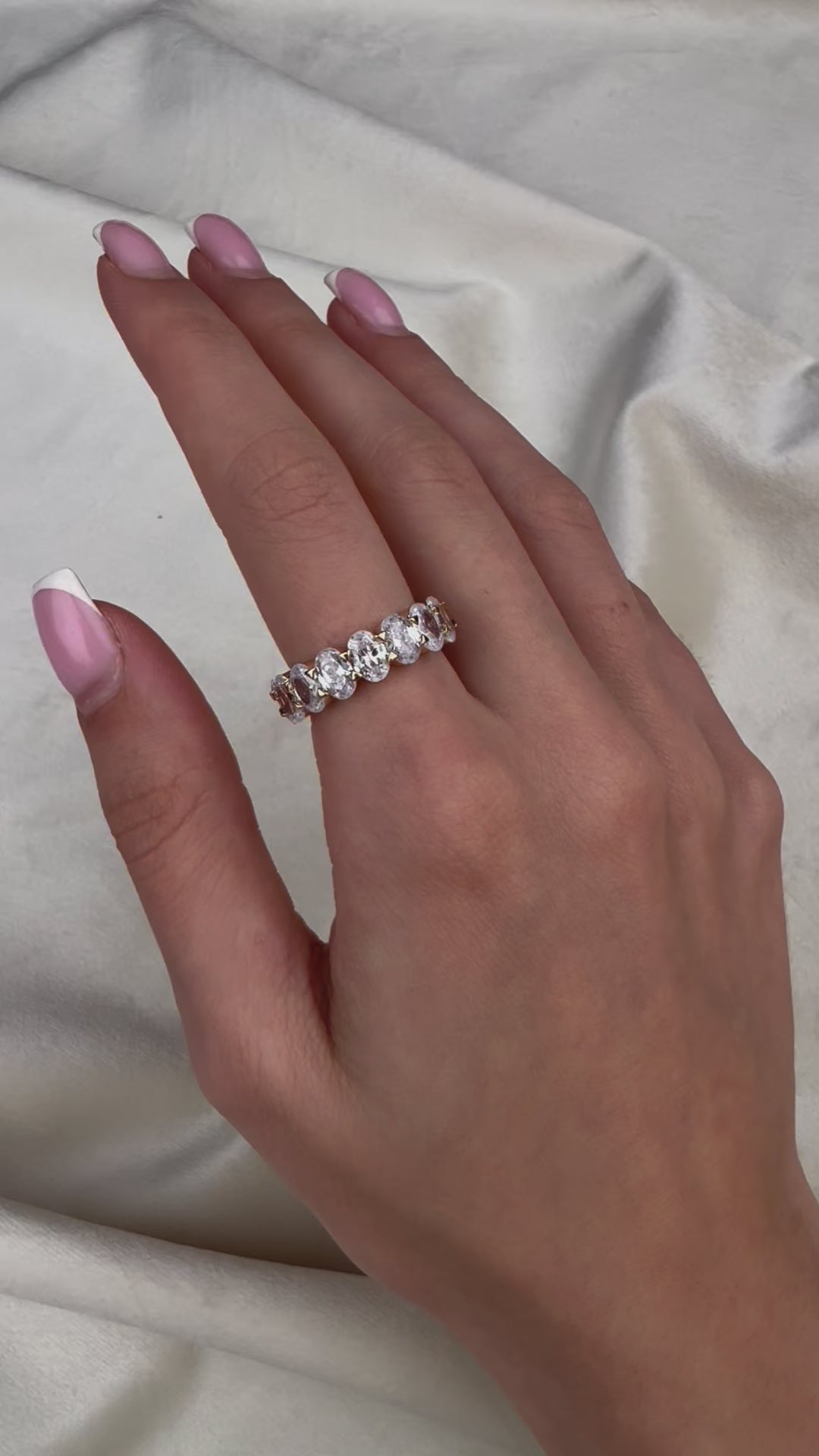 Unazë me gur oval të bardhë, dizajn i rafinuar dhe ndriçim elegant – perfekte për një stil të veçantë dhe të pastër.