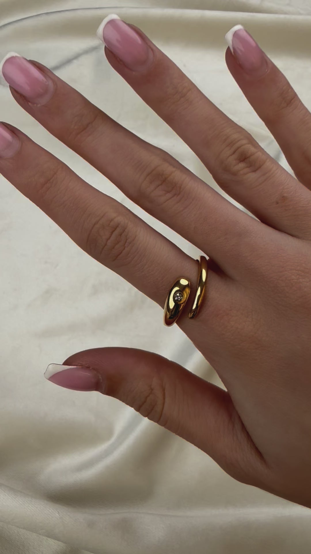 Unazë moderne me dizajn elegant, e zbukuruar me gurë shkëlqyes që reflektojnë dritën në çdo kënd – perfekte për stil dhe finesë bashkëkohore.