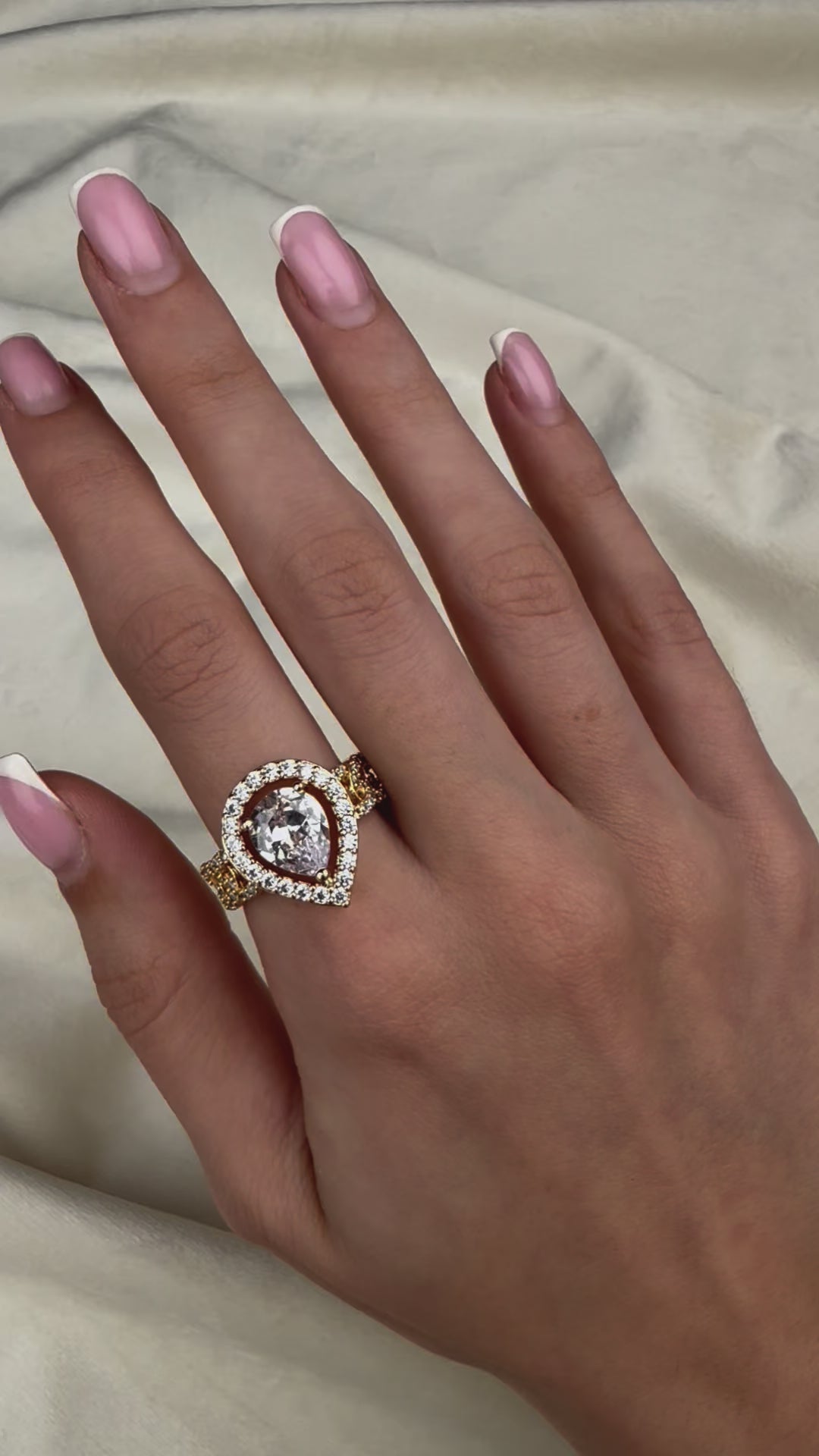 Unazë në formë pike loti me gurë, elegante dhe e ndritshme – simbol i ndjenjës dhe finesës.