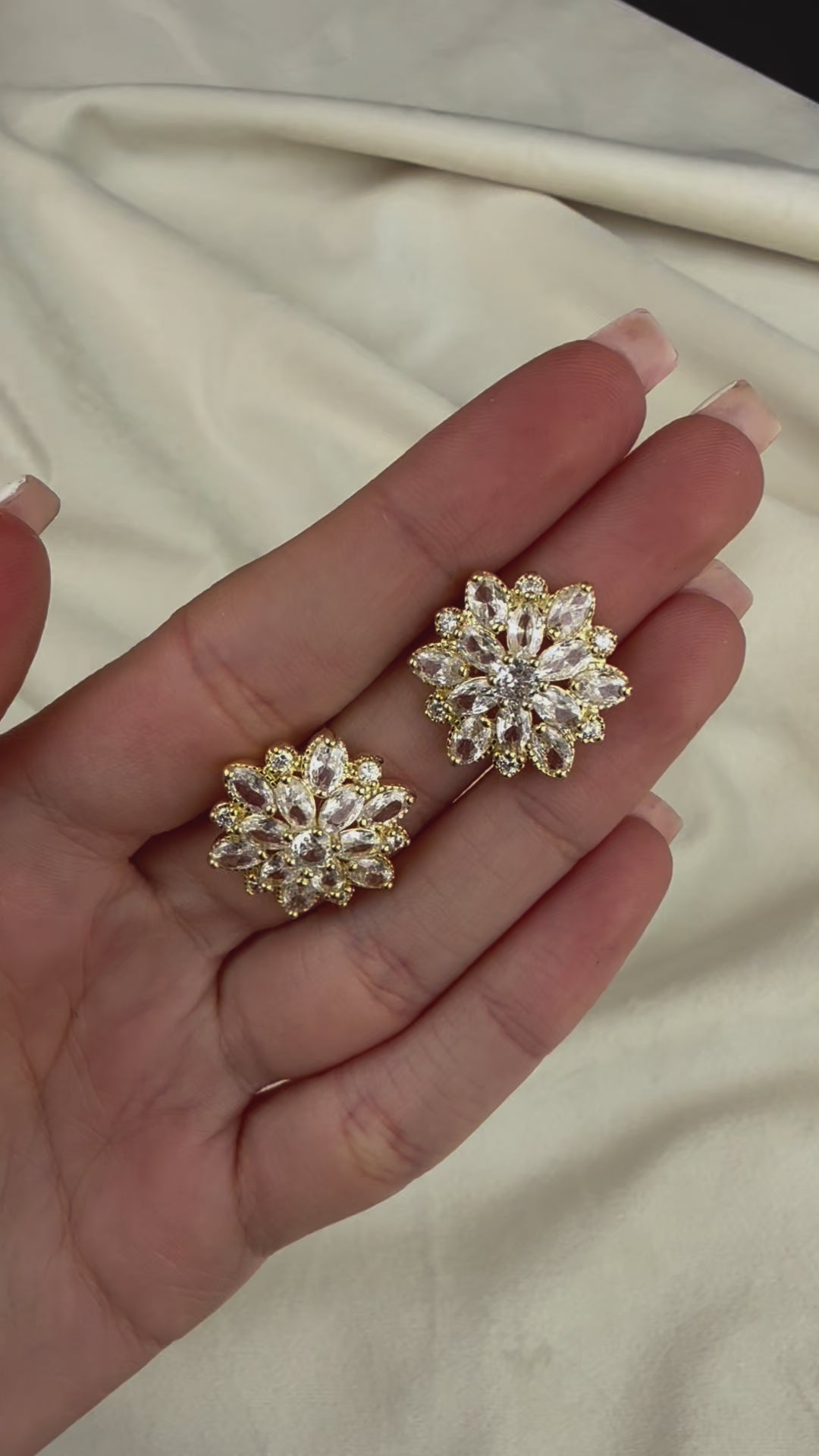 Një dizajn i ëmbël dhe elegant, këto vathë në formë lule me kristale ofrojnë shkëlqim dhe delikatesë. Perfecte për të shtuar një prekje të ndritshme dhe romantike në çdo stil.